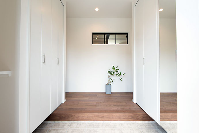 収納をたっぷり設けることで、いつでもスッキリした玄関を保つことができます。